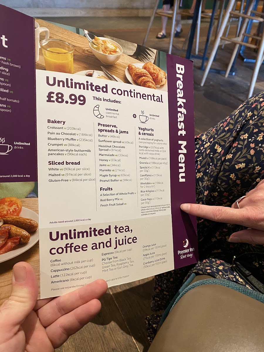 Served with your choice of a hot drink. (204kcal, calories stated do not include hot drink)